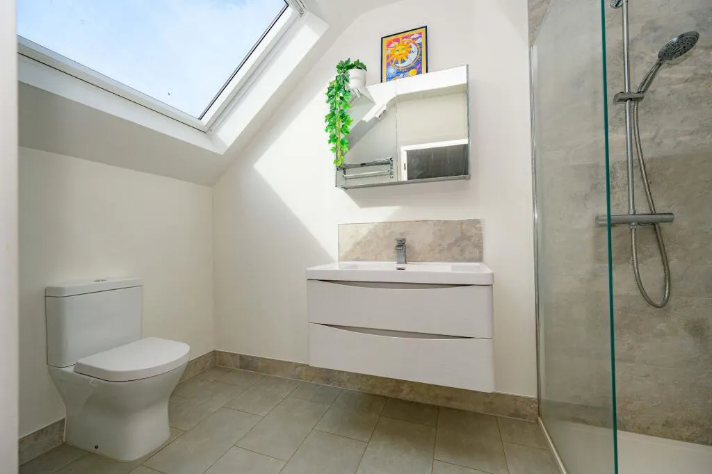 Uniquely, the ground floor also hosts a comprehensive guest suite complete with a walk-in wardrobe and private shower room, providing an ideal solution for elderly relatives or long-term visitors seeking independence without stairs.