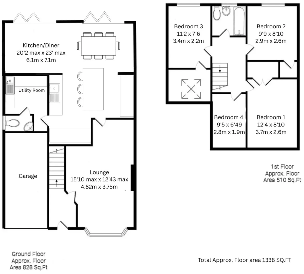 A separate lounge offers a tranquil retreat, ideal for relaxation or hosting guests. Upstairs, four bedrooms offer flexible accommodation for families, guests, or home office requirements, while the principal bedroom and bedroom 2 benefit from fitted wardrobes. Additional features include double glazing, gas central heating, and tasteful décor throughout, ensuring comfort and energy efficiency. This home is situated within easy reach of local amenities, reputable schools, and excellent transport links, making it a convenient base for commuters and families alike.