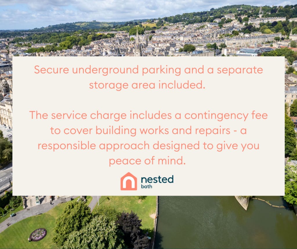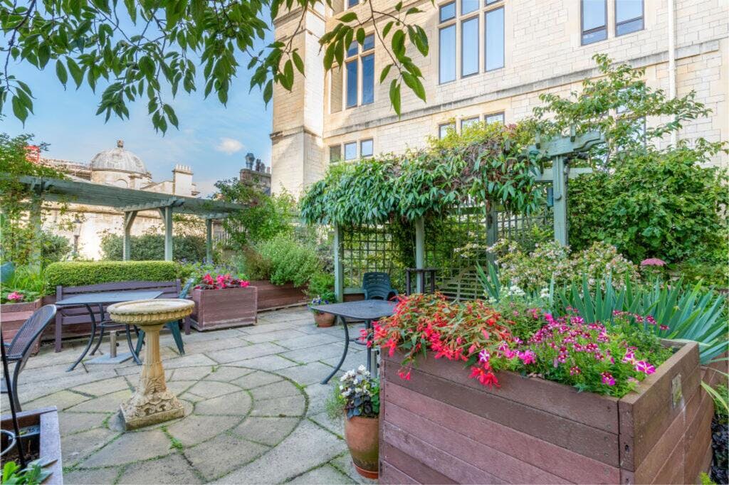 The Empire enjoys its own vibrant community and impressive communal areas: As well as boasting its own well loved and helpful building manager, Kelly, there is a small library, lovely light-drenched lounge area with popular subsidised bar, a dining room that hosts popular bi-weekly Sunday lunches, plus a billiard room, sauna, separate laundry room, fitness room and even a cinema room which hosts film evenings every Monday. The residents are a close-knit and welcoming group, frequently organising various days and nights out together, though there is no pressure should you wish to keep yourself to yourself! Meanwhile, The Empire's pretty communal garden complete with pergola, raised flower beds and ample seating and dining areas is perfect for outdoor entertaining or a spot of sunny relaxation and has wonderful views of Bath Abbey's spires and the beautiful surrounding Georgian rooftops of Bath's historic quarter. It is, unsurprisingly, a consistent winner of the 'Best Small Garden' Bath in Bloom award.
