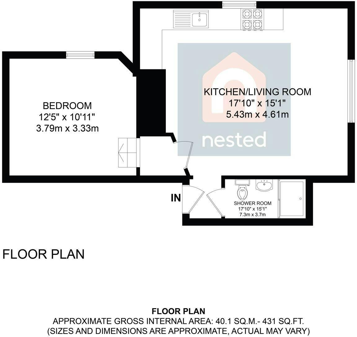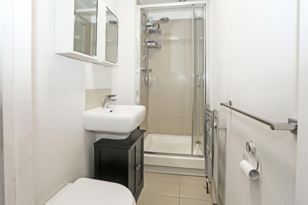 The spacious bedroom provides a calm and relaxing retreat, benefiting from generous proportions and excellent natural light. The fully fitted kitchen features sleek cabinetry, ample work surfaces, and integrated appliances, making it equally suited to everyday living and entertaining. A modern fitted shower room, finished to a contemporary standard, completes the accommodation.