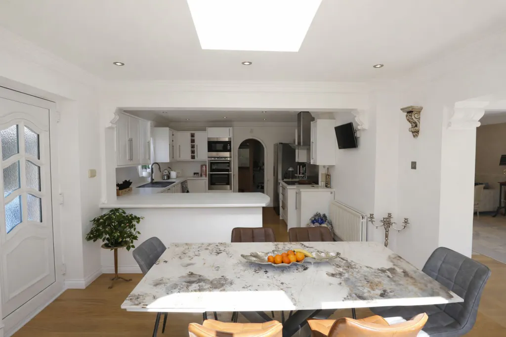 From the moment you step inside, this home makes a lasting impression. The expansive reception room provides an elegant yet welcoming space, ideal for both entertaining on a grand scale and relaxing in comfort. Its generous proportions and natural flow create a true heart of the home.