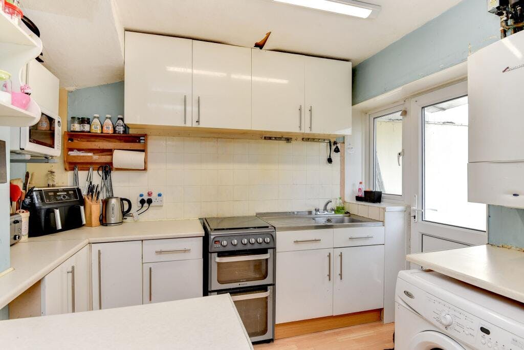 As you step into this home from the unusually large front driveway and garden you are met with a hallway with original floorboards and a bright, South West facing front living room to the right. To the back of the house is an open-plan kitchen dining room: a sociable space ideal for family life and entertaining.