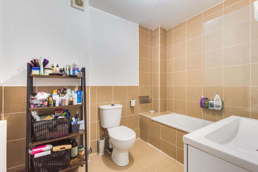 Both bedrooms are well-proportioned, with neutral décor and large windows that create a bright and airy atmosphere. The stylish bathroom has been thoughtfully designed with quality fixtures and elegant tiling, providing a luxurious space to unwind. Practicality is further enhanced by additional storage solutions within the flat, catering to the needs of modern living.