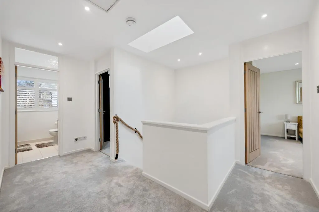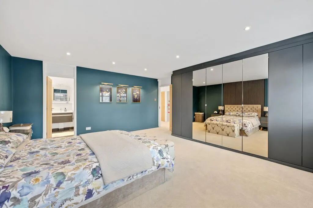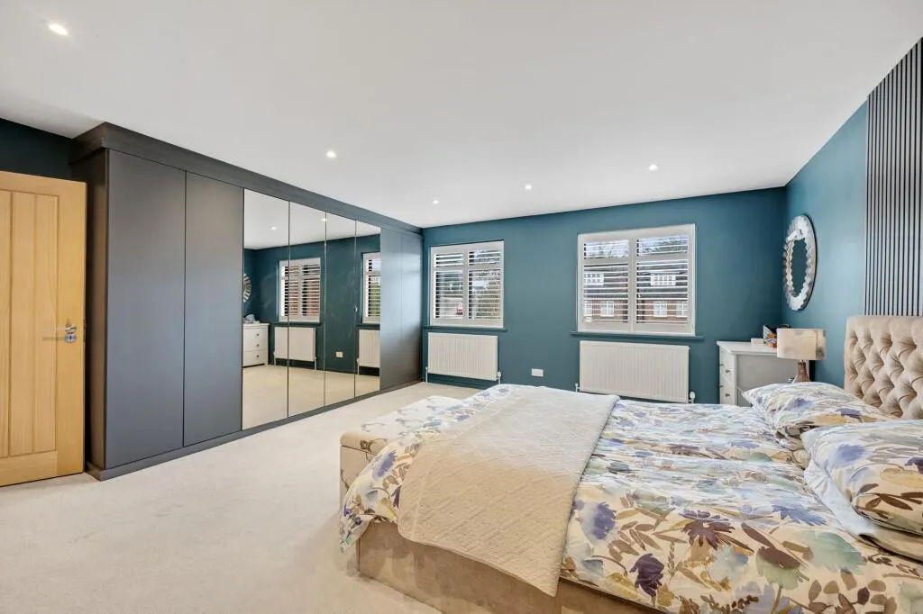 To the first floor, there are five generously sized bedrooms, including a luxury principal bedroom suite with shower room and bespoke inbuilt wardrobes – plus a family bathroom.