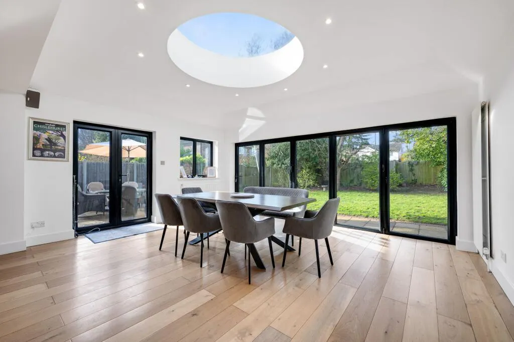 Occupying a desirable location within easy reach of Bickley and Elmstead Woods stations, this stunning five bedroom detached family home with double garage, off street parking for multiple cars and attractive private garden. Superbly extended and finished to a very high standard throughout, this wonderful home offers bright and spacious accommodation laid out over two floors, with additional scope to extend into the loft space, STPP. Flowing living space with stylish interiors and modern design provides the ideal layout for modern family life, conveniently situated in a sought after residential location.