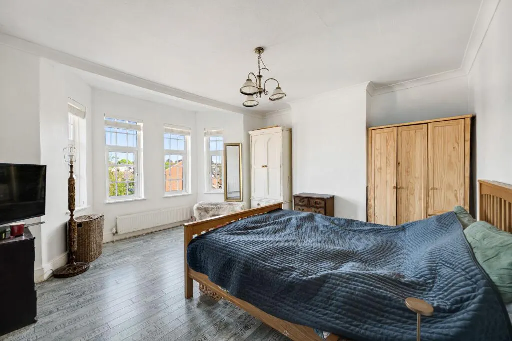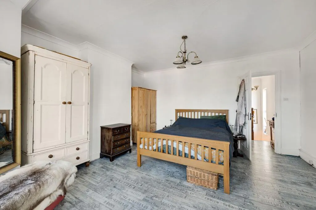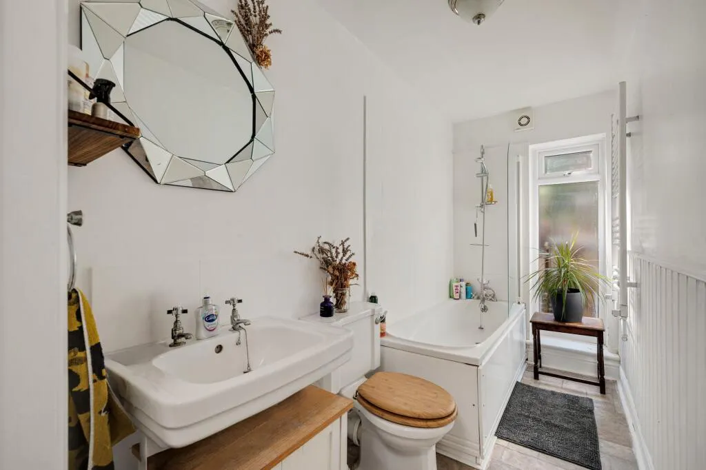 Upstairs, the property offers three well-proportioned bedrooms, each benefiting from tasteful decor and ample storage options. The family bathroom features contemporary fixtures and fittings, providing a comfortable and stylish space for daily routines. Throughout the property, period details such as high ceilings, original woodwork, and decorative cornicing are complemented by modern touches, creating a unique and appealing atmosphere.