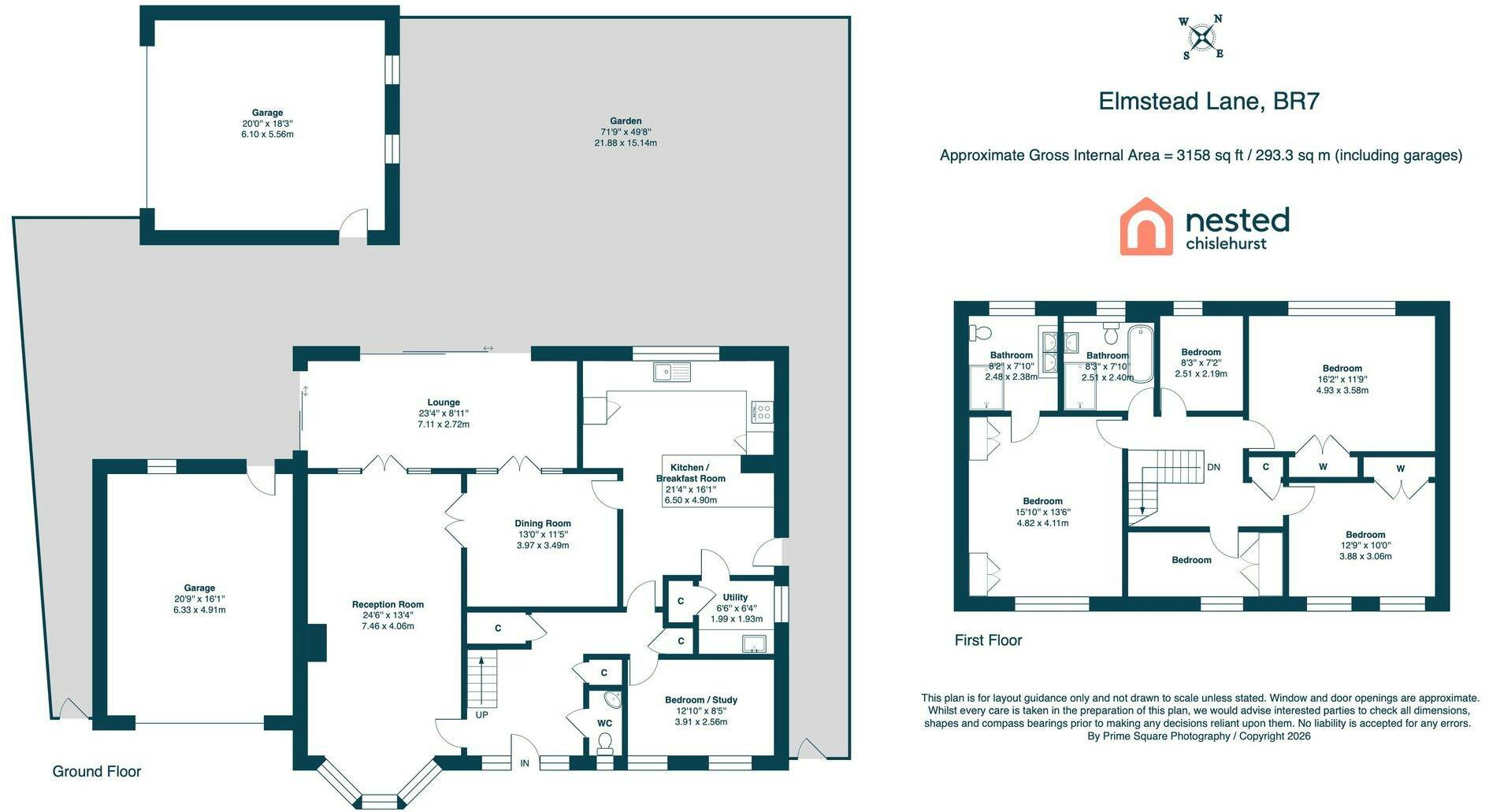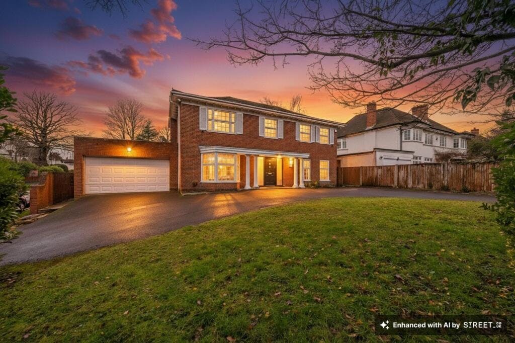 Externally, the property enjoys a delightful rear garden measuring approximately 71ft, with access to two double garages. To the front, a sweeping carriage driveway provides off-street parking for multiple vehicles.