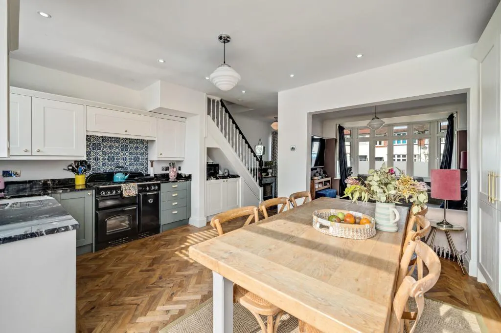 Just a short walk from wonderful Chislehurst Village, this stunning four bedroom 1930’s style family home featuring off street parking and delightful low maintenance garden with home office/garden room. Superbly updated and elegantly appointed throughout, the property offers bright and spacious accommodation arranged over three floors, flooded with natural light, with stylish interiors and classic design– ideal for modern family life. Features include an inviting reception room, well equipped open plan kitchen/diner, stylish first floor shower room, principal bedroom with en-suite, attractive flooring, gas central heating, and double glazing.