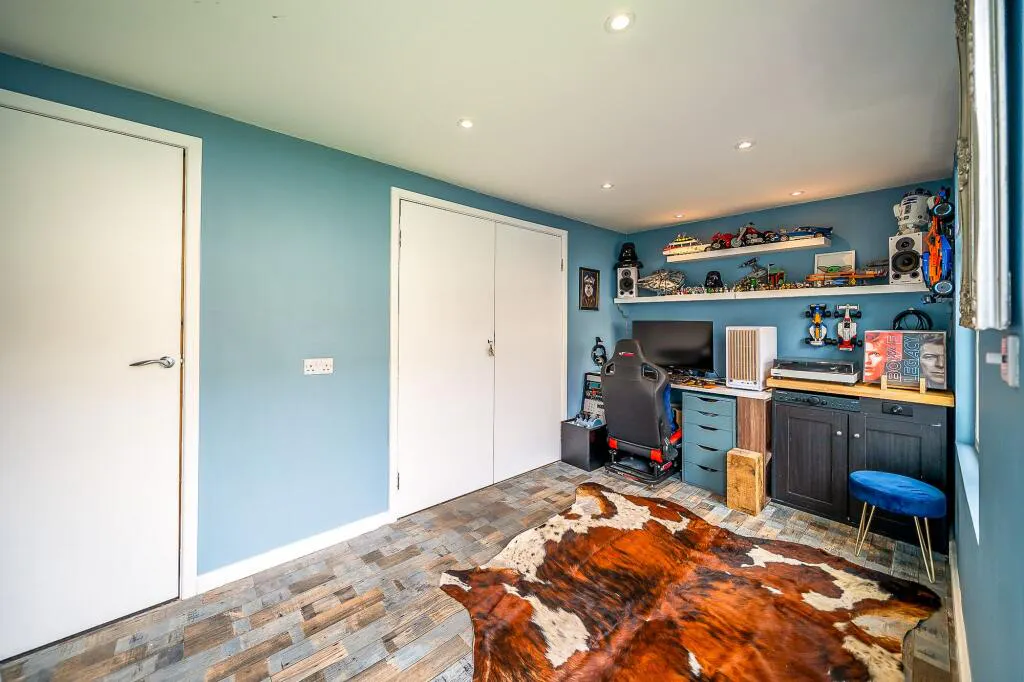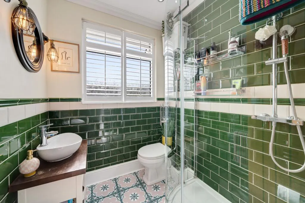 To the first floor, there are three well proportioned bedrooms – two doubles and a third single/study- plus a shower room with contemporary style suite and elegant tiling.