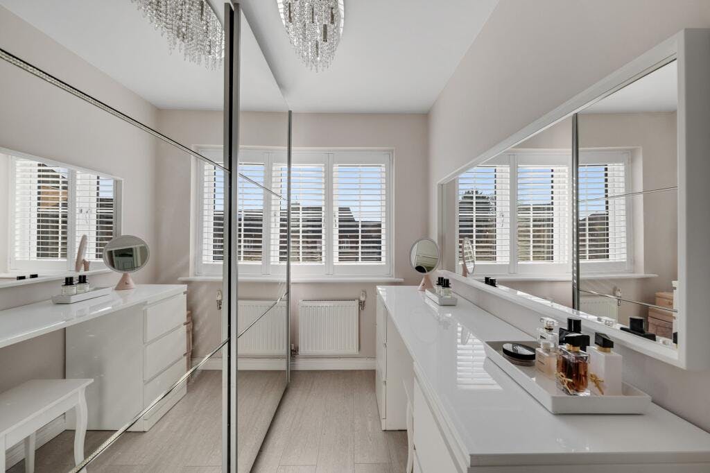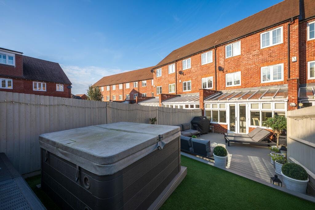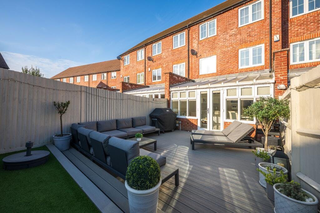 Externally, the rear garden is a haven of tranquillity, with areas of decking and all-weather surface lawn providing the perfect space for al fresco entertaining and relaxing.