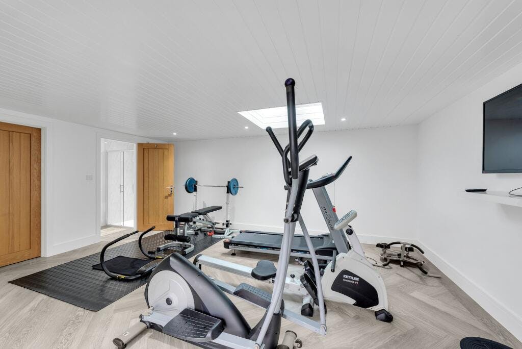 Externally, the garden, with external lighting, provides patio and lawn areas, along with a fabulous block paved terrace with granite slabs - perfect for al fresco entertaining - complete with hot tub with canopy, stainless steel barbecue, water feature, and access to the external gym building. The gym itself has been fully fitted to encompass a range of equipment and storage solutions.