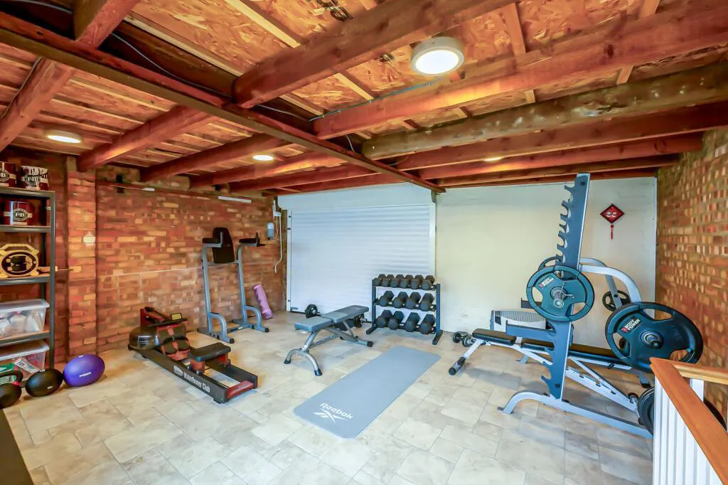 An outbuilding to the rear of the property offers excellent potential for use as a gym or home office, catering to a range of lifestyle needs.