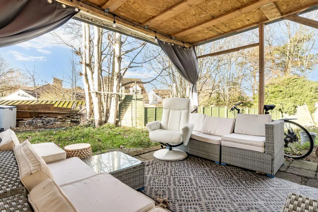 A spacious patio area offers an ideal spot for al fresco dining. There is also the added convenience of a secure side gate, providing direct access to the garden from the front of the property.