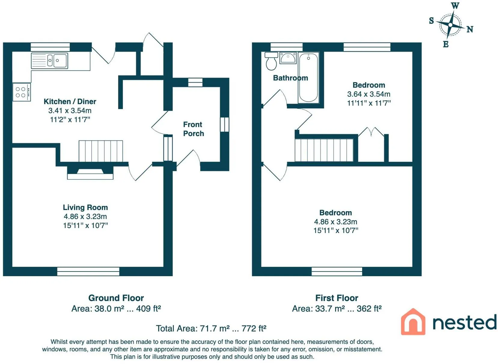 Nestled in a quiet residential cul-de-sac, this charming two-bedroom end-of-terrace house presents an ideal opportunity for first-time buyers, young families, or those seeking a comfortable downsize. The property is beautifully presented throughout and features a bright and spacious living room, a fitted kitchen with ample storage. Upstairs, there are two generous double bedrooms, each offering plenty of natural light and built-in wardrobes. The contemporary family bathroom is finished to a high standard with stylish fixtures and fittings. Additional benefits include double glazing, gas central heating, and a useful front porch area for ample storage. The property is move-in ready and offers a warm and inviting atmosphere for its next owners. The standout feature of this home is its impressive garden, which wraps around the side and rear of the property, providing a rare sense of space. The garden is mainly laid to lawn, making it perfect for children to play or for summer entertaining.
