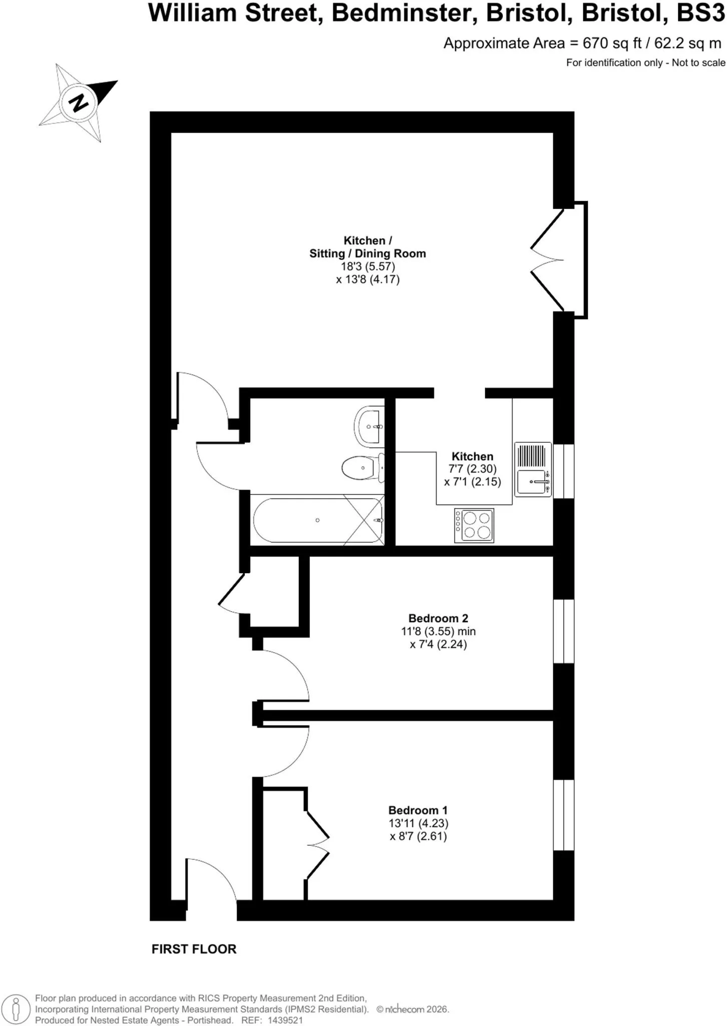 Two well proportioned double bedrooms offer comfortable accommodation, while the bathroom is fitted with a clean and modern three piece suite. A useful storage cupboard completes the internal layout.
