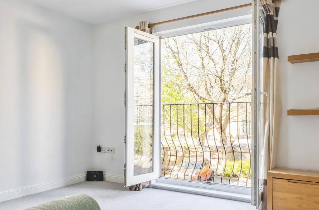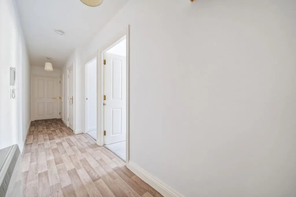 Internally, the property is thoughtfully arranged and filled with natural light. A welcoming hallway leads through to a generous open plan living space, where large glazed doors open inward to a Juliette balcony, creating a bright and airy focal point ideal for both relaxing and entertaining.
