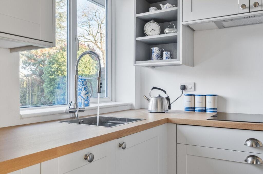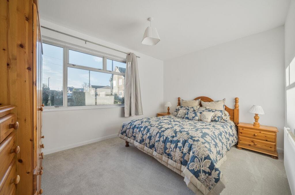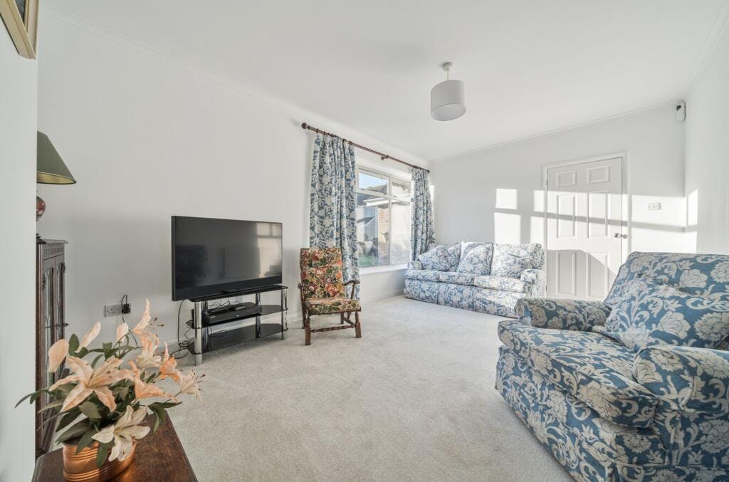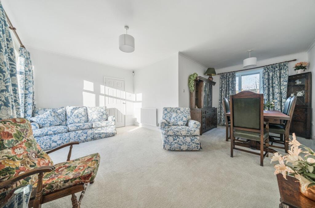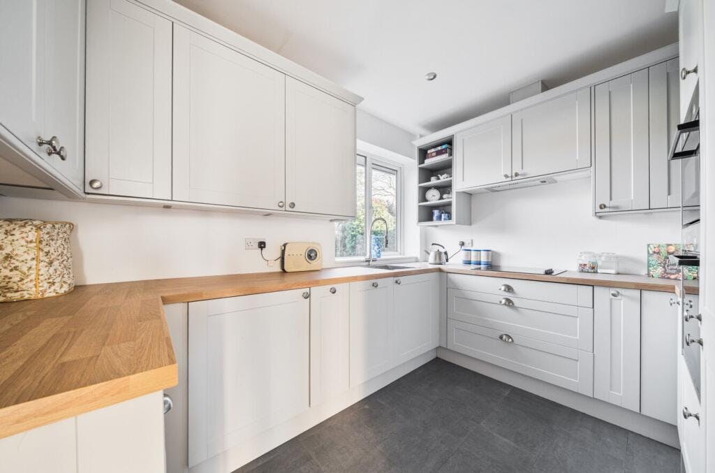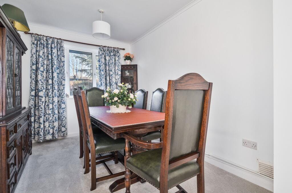 The entrance hall feels spacious and welcoming, with a useful storage cupboard and stylish yet easy-to-maintain flooring. To the right is an L-shaped lounge and dining room, with a large window to the front, newly laid carpet and a further window to the rear where the dining area is currently arranged. There is clear potential here to replace the rear window with doors opening directly onto the garden. Adjacent is a recently refurbished kitchen, finished in tasteful neutral colours with excellent storage, integrated appliances and pleasant views over the rear garden. The condition is superb and ready to start cooking.