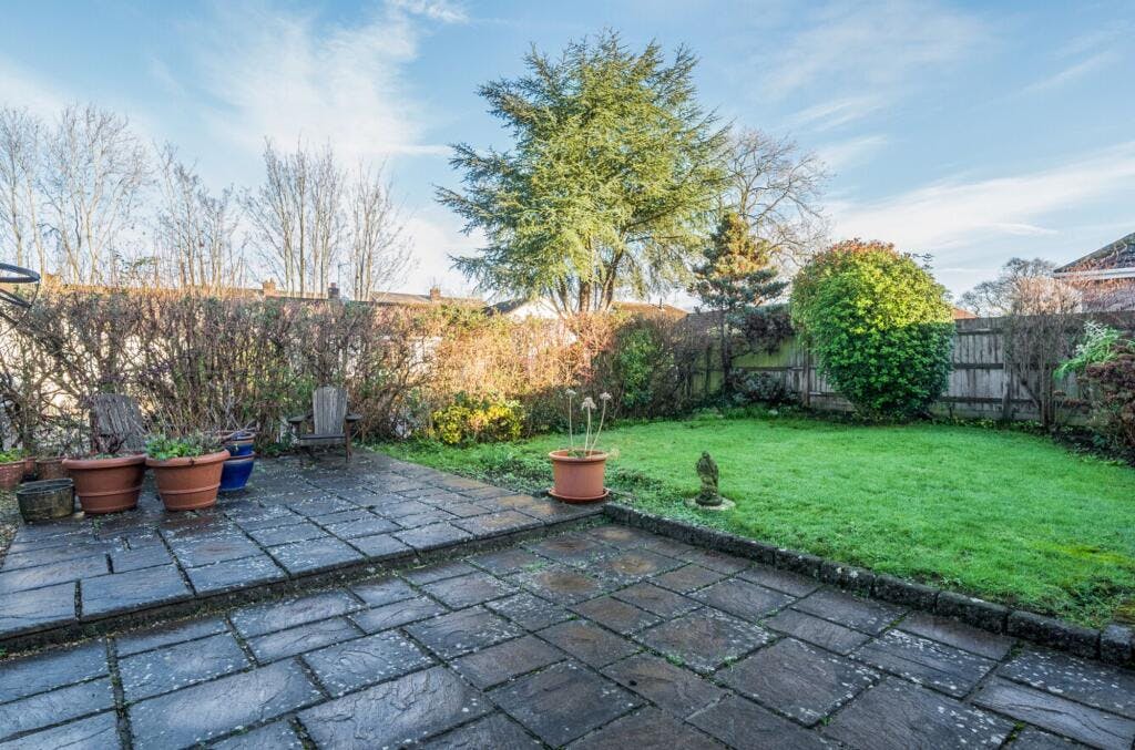 Externally, the rear garden is very pretty and feels private, with a patio seating area, lawn and well-stocked borders. It is easy to maintain but very enjoyable to use, with side access to the front and direct access into the garage. To the front, there is ample off-road parking and a double-length garage with electric doors.