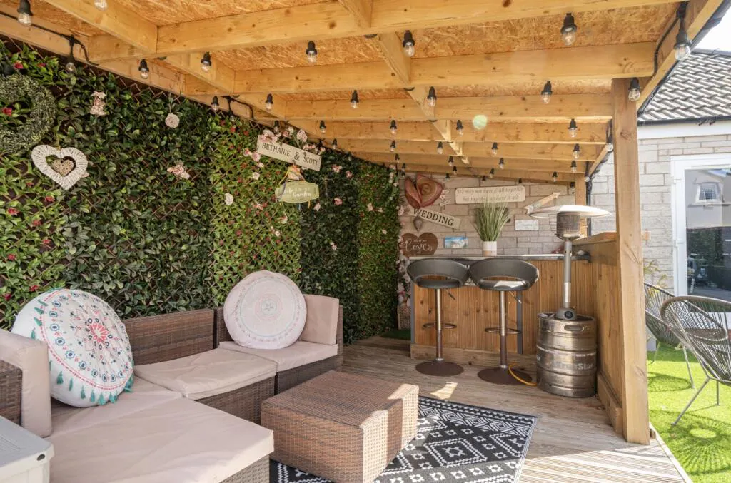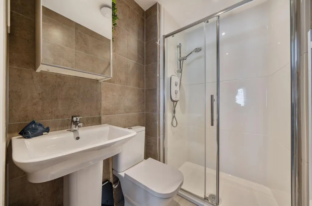 The garden has been thoughtfully landscaped with a variety of seating areas, including a covered decked space with power, making it ideal for year round use. It is larger than most within the development and benefits from rear gated access.