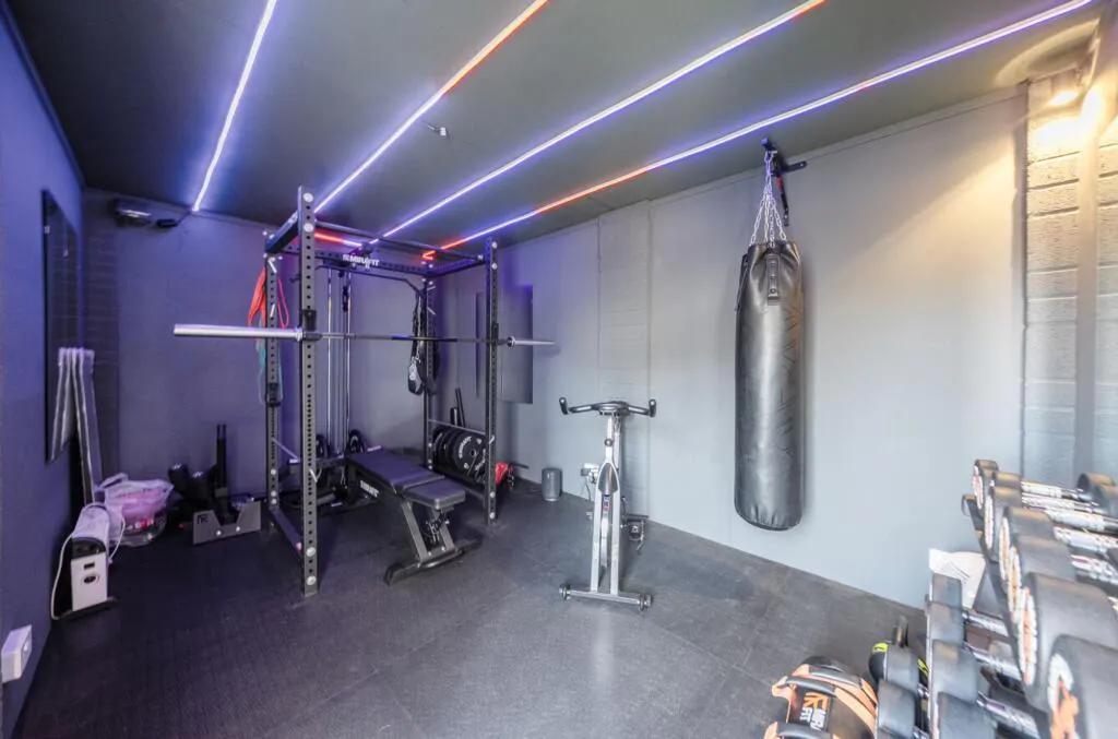 The garage has been adapted to create a gym space, with flexibility to be used as a home office if desired, while still retaining useful storage to the front. There is also ample space for bikes and general storage, with a boarded loft providing further practicality.