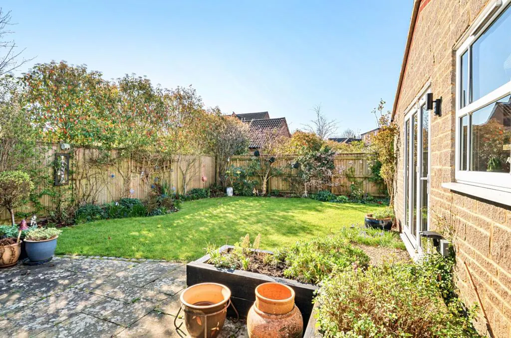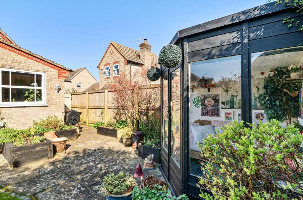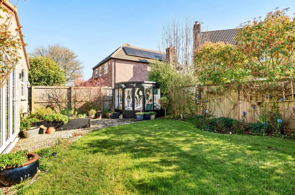 The rear garden is another highlight. There is a seamless flow from the sitting area out to the patio, which wraps around the corner and provides plenty of space for sitting and eating outside. There is a lawn, borders with a variety of shrubs and plants that really come alive in the summer, side access on both sides of the property, and a summer house with electricity which is ideal as a workspace, somewhere to relax, or even somewhere to escape for five minutes. Being south facing, the garden gets lots of sun.