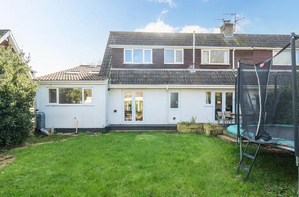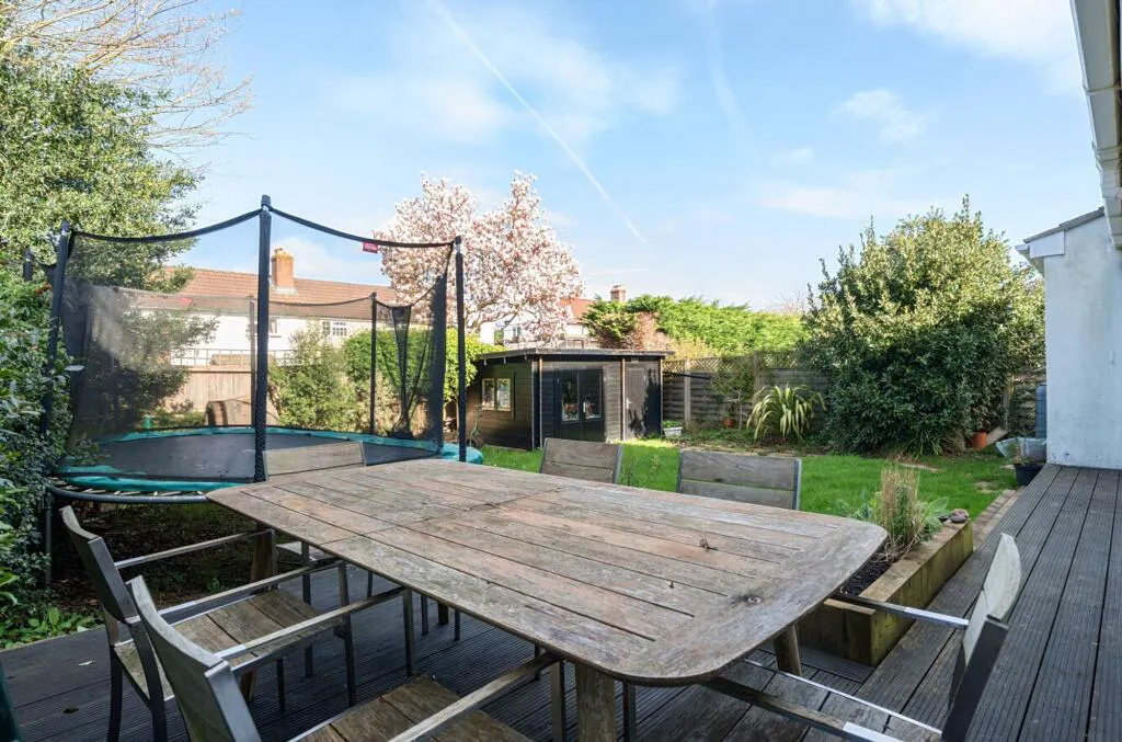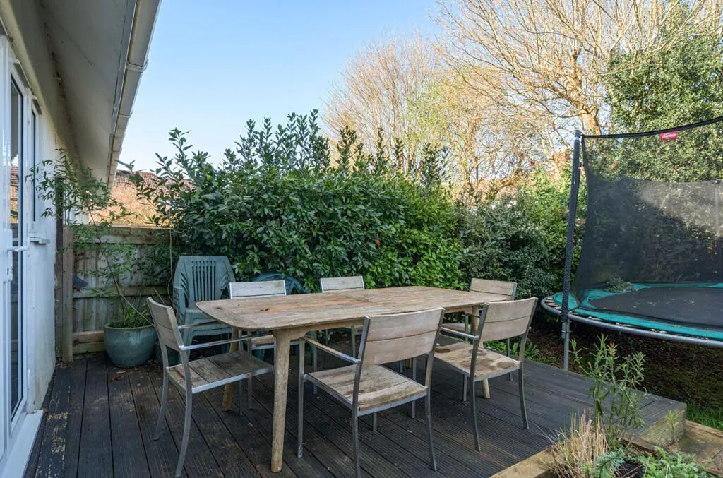 Outside, the house feels very private to the front with high hedges, parking for two cars, a pretty front garden and lots of useful storage, ideal for bikes, camping equipment or general storage. The rear garden is a really lovely space with a raised decked area accessed directly from the house, ideal for sitting and dining outside, a lawn, another seating area next to the pizza oven, a summer house and side access.