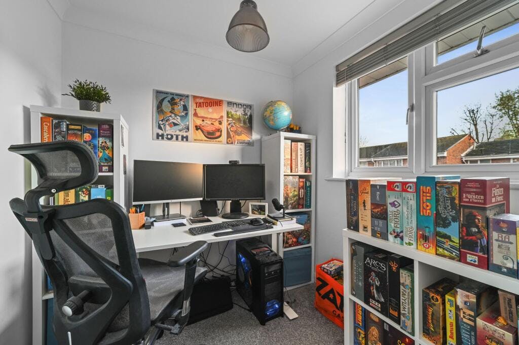 The first floor provides three bedrooms (bedroom two of which has a built-in wardrobe) all positioned off the landing (including airing cupboard and boiler). The contemporary family bathroom offers a three-piece white suite including panel enclosed bath with wall mounted shower attachment, low level WC, vanity wash hand basin and ladder style heated chrome towel rail.