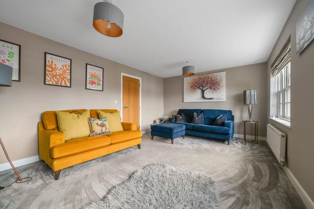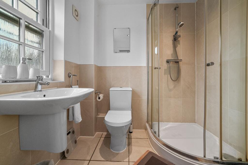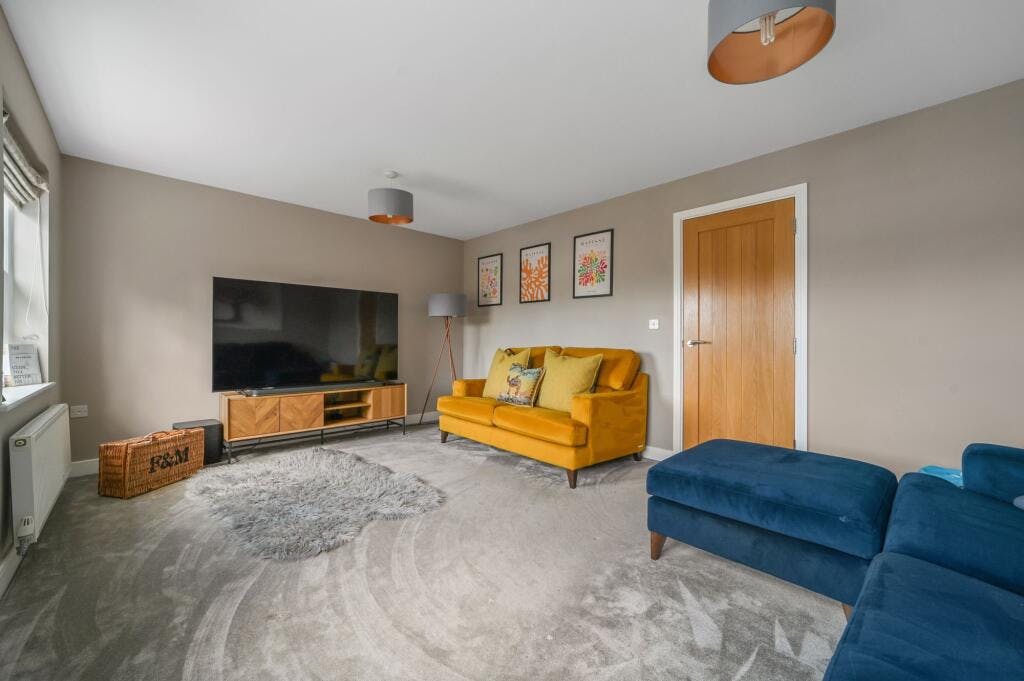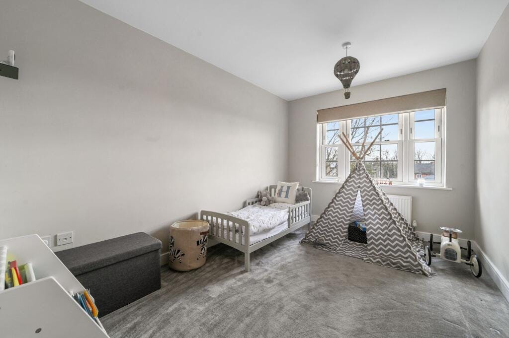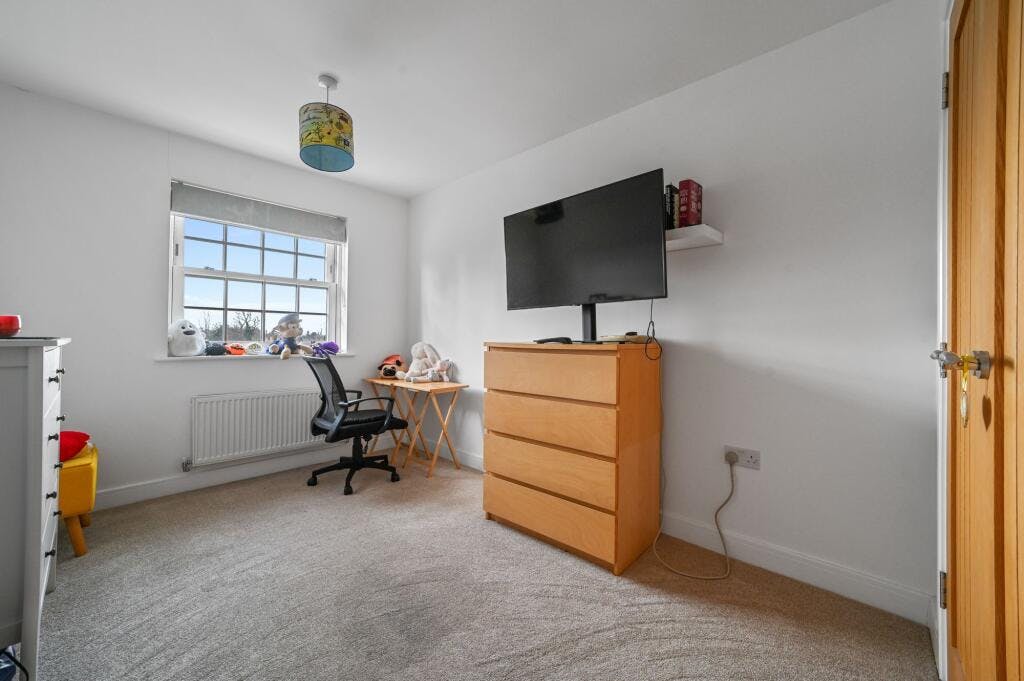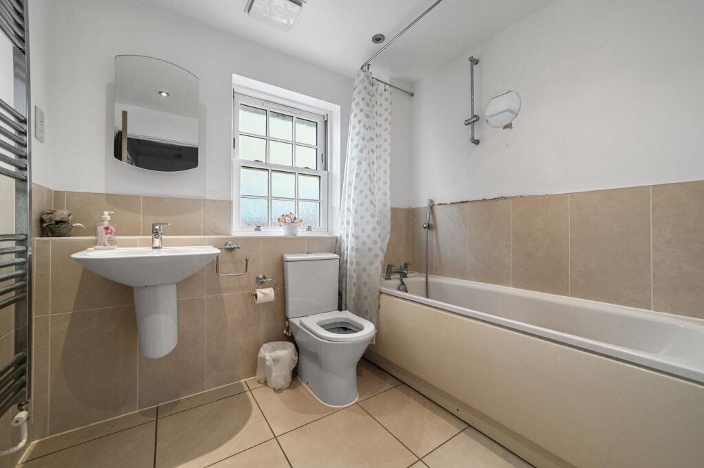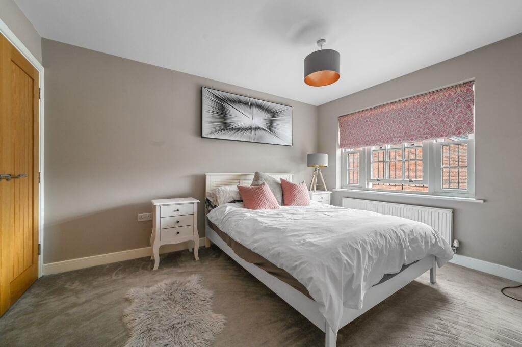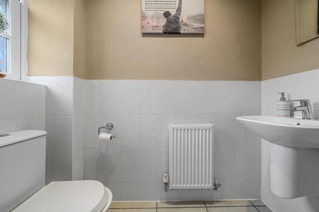 The second floor features the remaining three double bedrooms (two of which also have fitted wardrobes) and a family bathroom including low-level WC, pedestal wash hand basin, panel enclosed bath, ladder style heated chrome towel rail and tiled flooring.