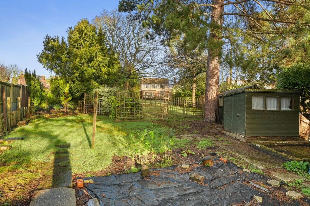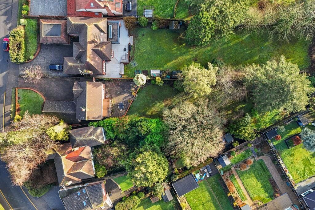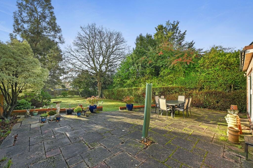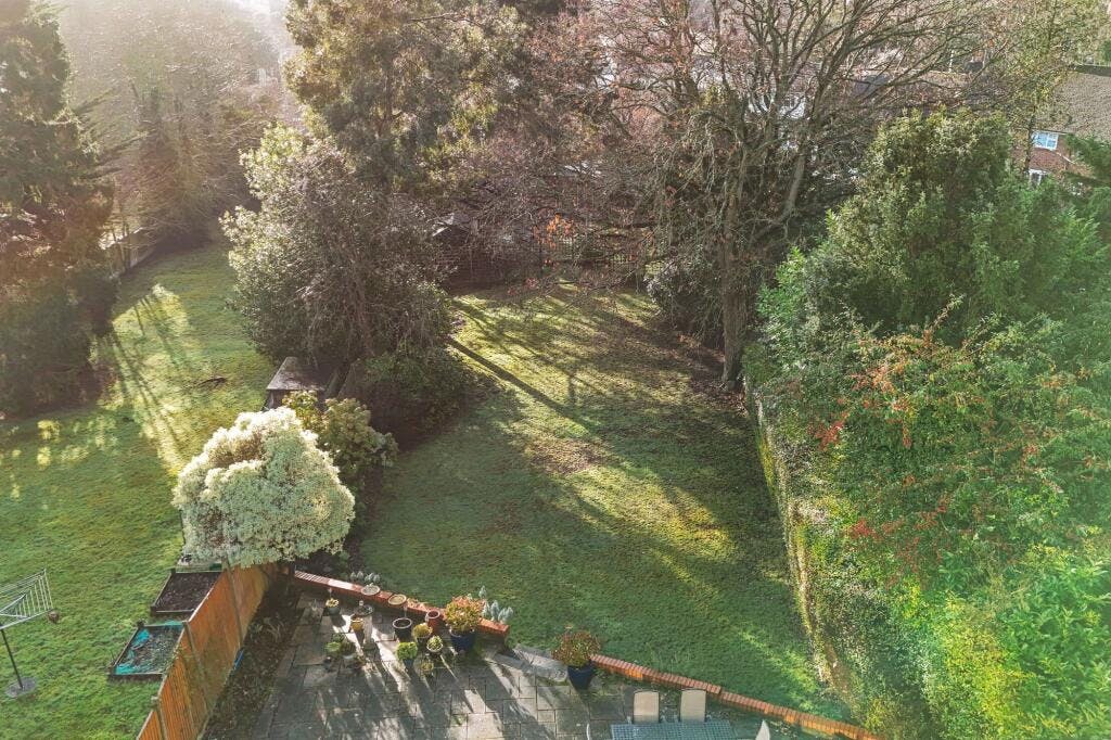 The impressively sized rear garden commences with a paved patio area to the front with the remainder mainly laid to lawn with various pretty flower borders, mature trees, shrubs and numerous evergreens.