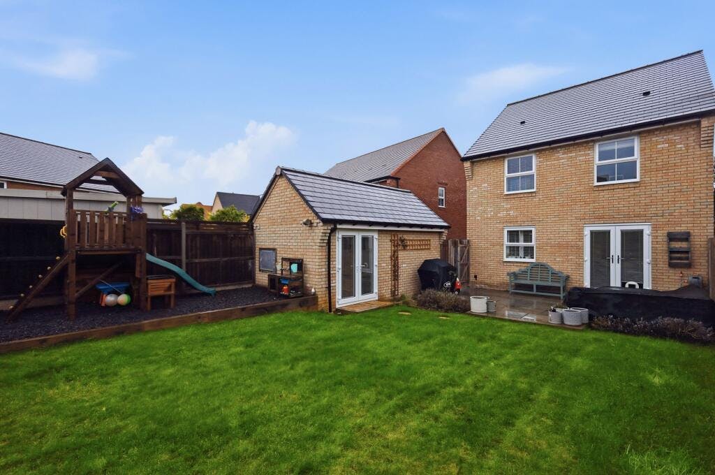 Located within the highly sought after St Andrews Gate development in Halstead, this beautifully presented four bedroom detached home is offered in excellent condition throughout. The property benefits from a west facing garden, driveway parking, and a garage that has been partially converted to provide a useful home office.
