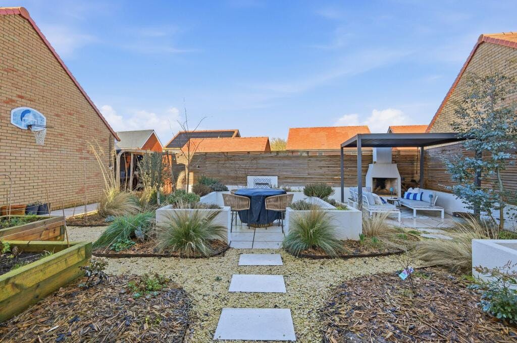 Externally, the property continues to impress with a beautifully landscaped rear garden designed for both relaxation and social gatherings. Standout features include a bespoke outdoor kitchen and a sauna, creating a unique outdoor lifestyle space rarely found in similar homes. A detached garage with additional storage space and a private driveway with EV charger provide ample parking and practicality.