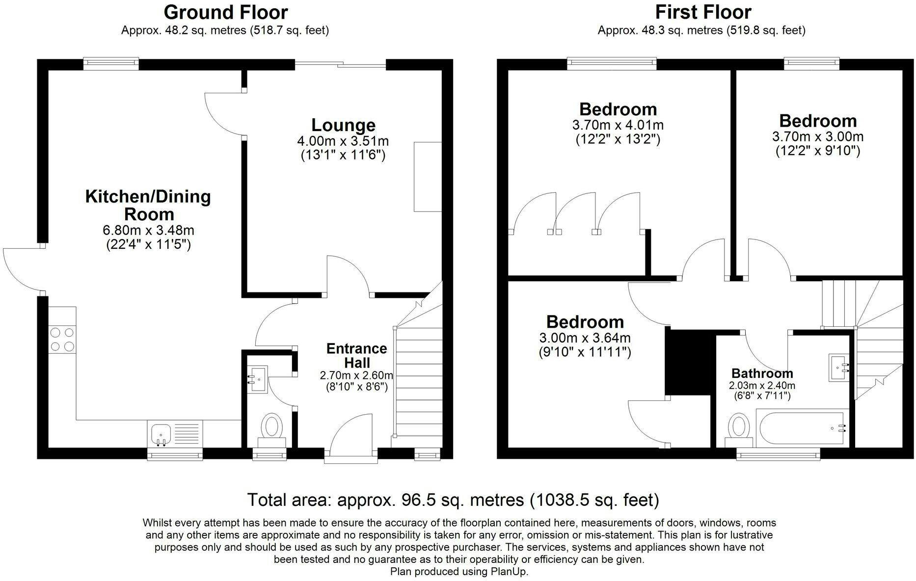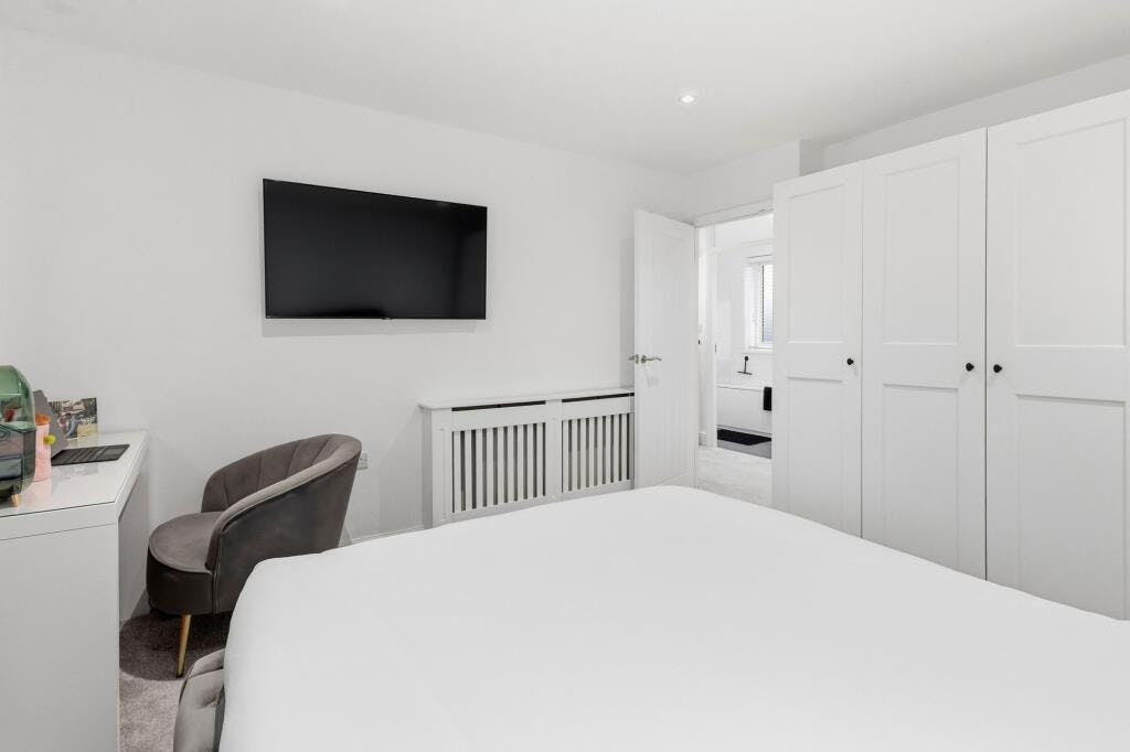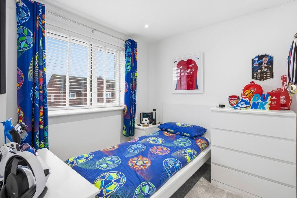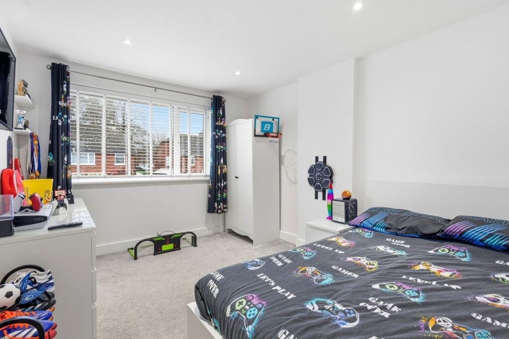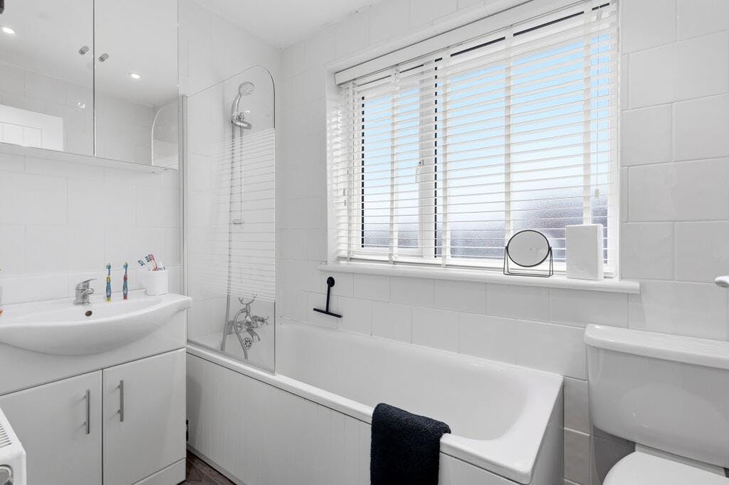 Upstairs, the first floor comprises three well-proportioned bedrooms, each offering flexibility for family living, guests or home working. The main bedroom provides generous space for storage, while the remaining bedrooms are ideal for children or additional uses. A centrally located family bathroom completes the accommodation.
