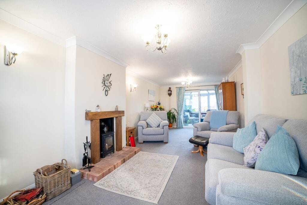 The living room, much like the rest of the house, has neutral décor. For those cosy winter evenings there is a log burning stove. The adjoining conservatory is an additional space to relax and provides extra access into the garden.