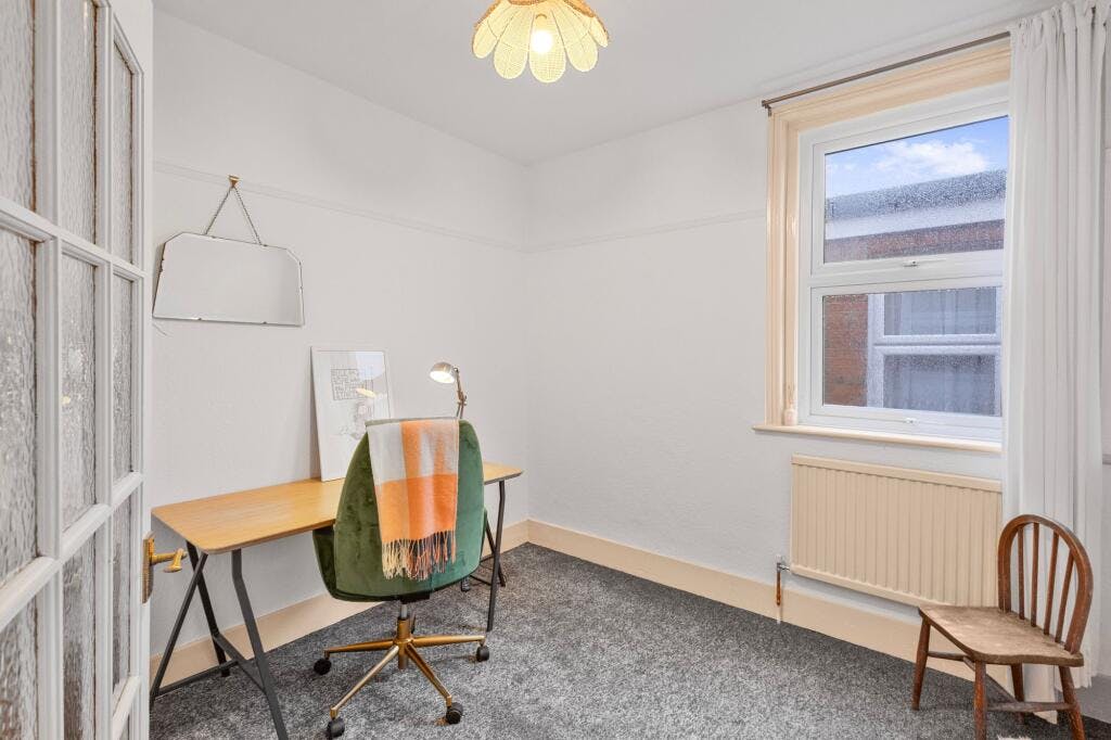 Introducing this charming 2-bedroom terraced house, featuring an impressive first-floor flat design with a spacious layout. The property includes two generously sized double bedrooms, a family bathroom, and a stunning kitchen. The living room boasts a large feature bay window, allowing natural light to flood the space and create a bright, airy atmosphere. Adding character is a lovely feature fireplace, which creates a cosy feel. Convenience is assured with on-street parking, making coming home effortless. This delightful property is chain-free, making it an ideal choice for a straightforward move.