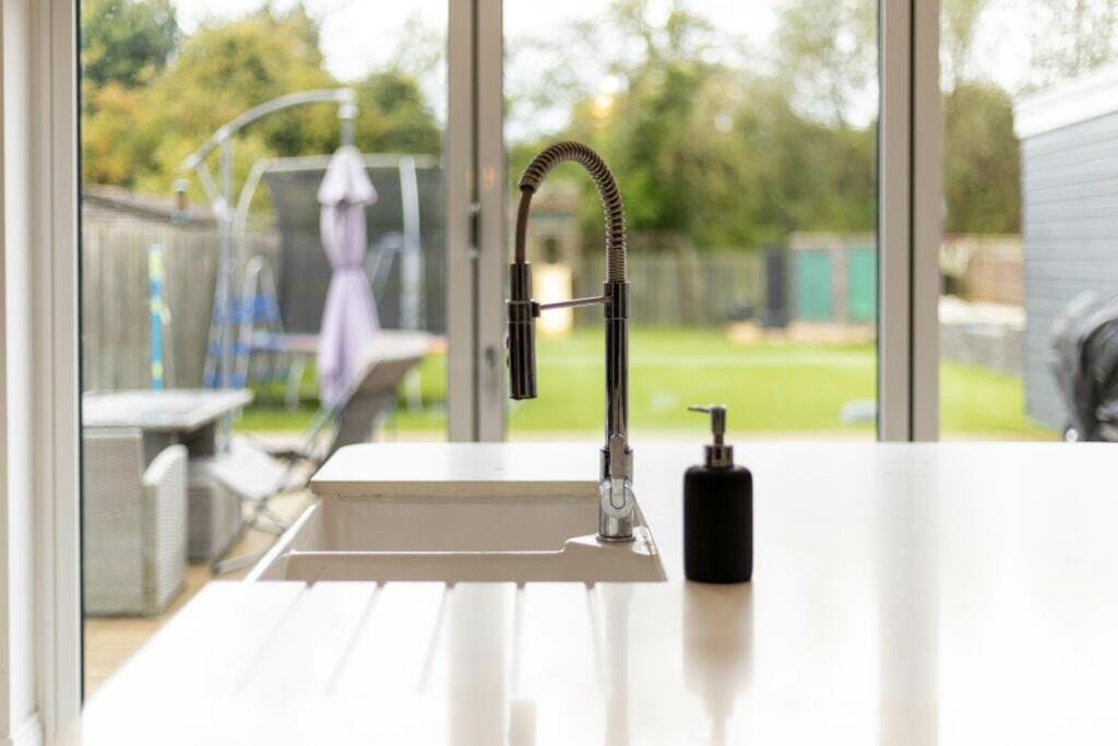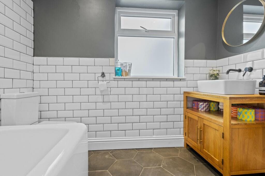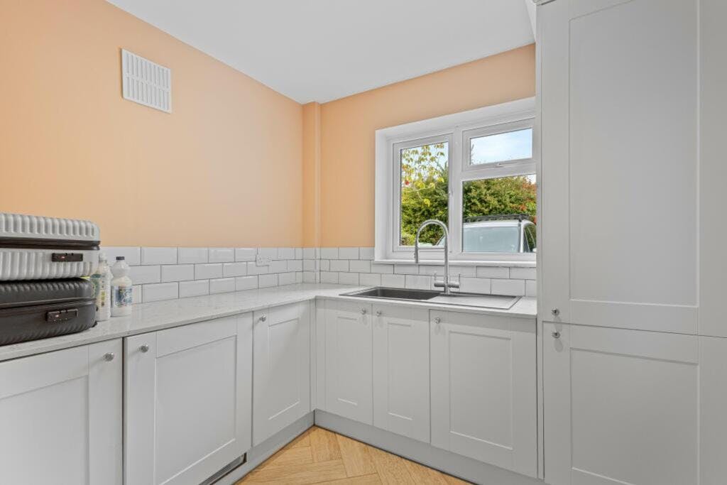 The living spaces are exceptional, starting with a tranquil retreat at the front, which is equipped with a projector, perfect for family movie nights. The open-plan kitchen and dining area provide plenty of space for entertaining guests, and the bi-fold doors make it easy to extend the gathering into the garden. In addition to these areas, a large utility room ensures that the rest of the home remains peaceful, and the current owners have maximized storage with a clever under-stairs solution.