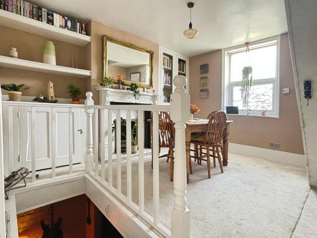 Believed to be one of the oldest homes on the road, the current owner has been exceptionally sympathetic in every detail of the renovation. Inside, the home spans four floors and offers versatile living throughout — including a contemporary fitted kitchen with integrated appliances, a modern shower room, and a dining room leading down to a recently converted lounge on the lower level. Upstairs, two double bedrooms feature period windows and tasteful décor that complements the character of the property.