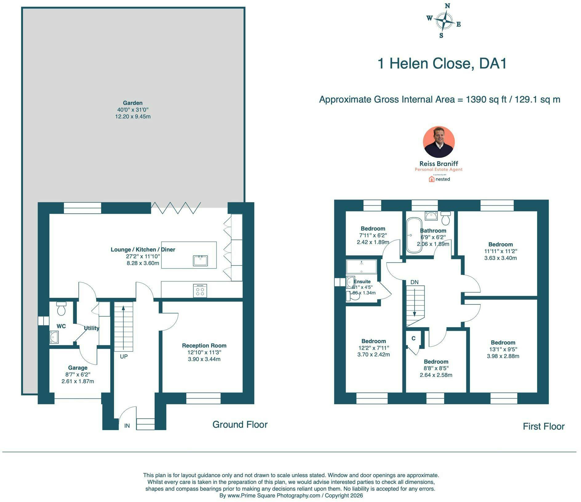 The first floor offers a spacious and bright landing area, leading to four well sized bedrooms. There are three generous doubles, one of which benefits from an en suite, along with a comfortable single bedroom and a further study or nursery room.