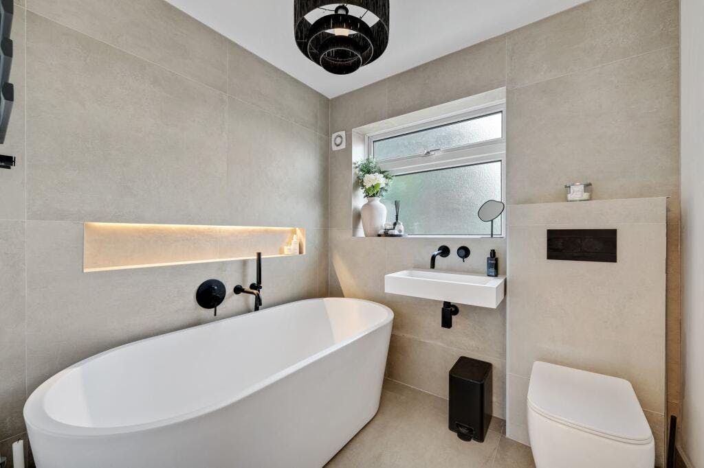 A beautiful family bathroom completes the accommodation, featuring a contemporary freestanding bath suite and elegant tiling that adds a real touch of luxur