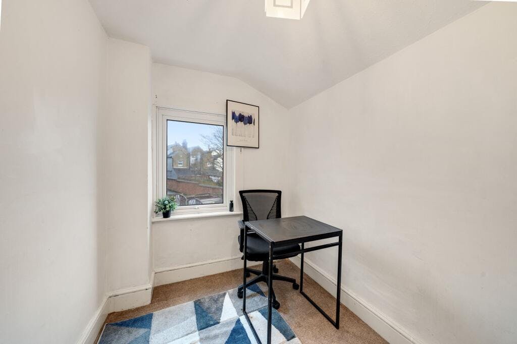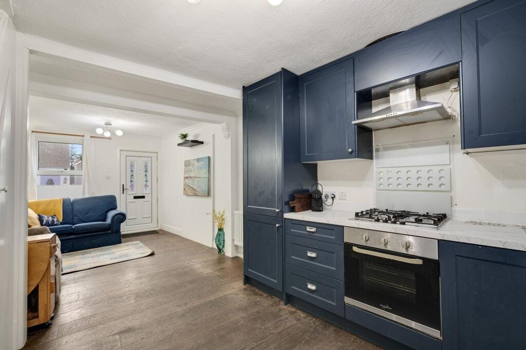 Accommodation comprises entrance leading into the open plan reception/kitchen with window to the front and ample space for relaxing, entertaining and dining. The kitchen area comprises a range of wall and base units with work surfaces incorporating inset sink unit, gas hob with overhead extractor, electric oven, and further space for appliances. A rear lobby has a door through to the family bathroom/WC and a door leading out to the private garden with rear access. To the first floor, there are two well proportioned double bedrooms each with inbuilt storage, with access through to a further versatile single bedroom/study/nursery from the rear bedroom.
