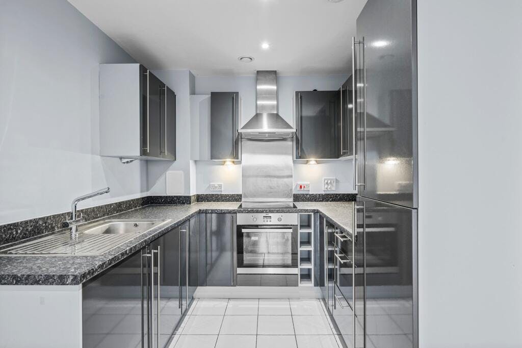 Accommodation comprises entrance hall with inbuilt storage, leading into the open plan reception/kitchen with ample space for relaxing, entertaining and dining. The kitchen area comprises a quality range of matching high gloss wall and base units with work surfaces incorporating inset sink unit, induction hob with overhead extractor, electric oven, and further space for appliances. There is a generous double bedroom with useful inbuilt wardrobe, plus a shower room with modern suite and elegant tiling.