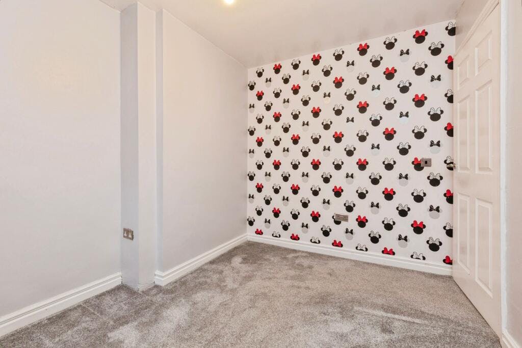 The garden itself is a standout feature, perfect for families or anyone who loves to entertain. A spacious, well-maintained lawn is bordered by high hedges and fencing, ensuring privacy and a safe area for children or pets to play. The decked patio area is ideal for al fresco dining, summer gatherings, or simply relaxing outdoors. This outdoor space is complemented by a newly installed patio, providing ample room for seating and embracing the indoor-outdoor lifestyle. Back inside, the three bedrooms offer flexibility for family life, guests, or working from home. Each bedroom is thoughtfully designed with neutral décor and stylish feature walls, allowing buyers to personalise the spaces to suit their tastes. Built-in wardrobes and mirrored storage solutions add practicality without sacrificing style, while plush carpet and laminate flooring create a cosy atmosphere throughout.
