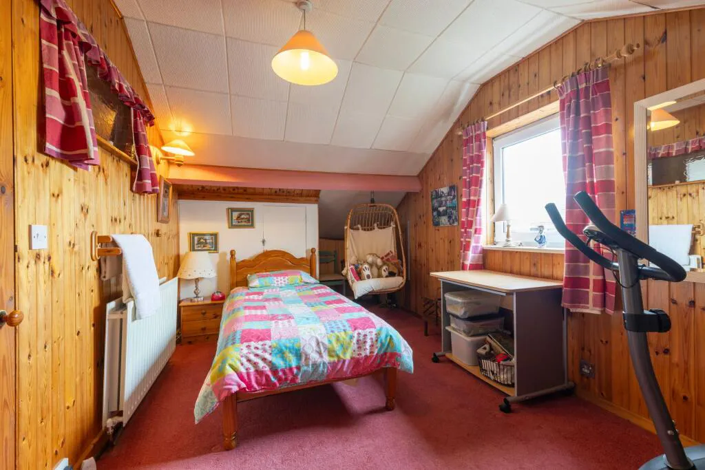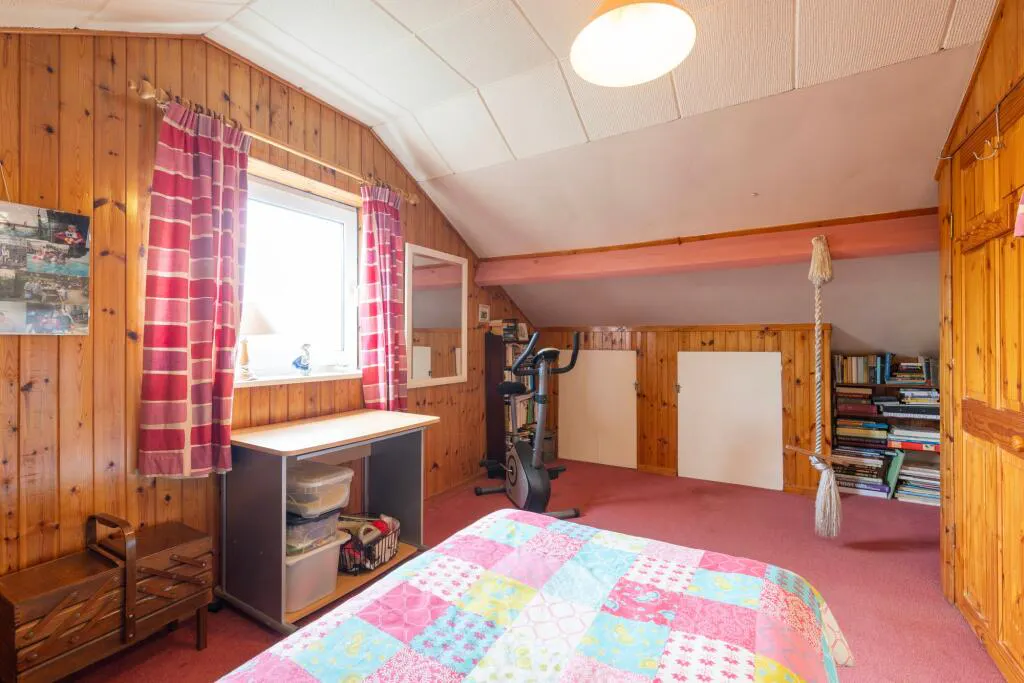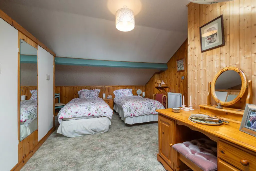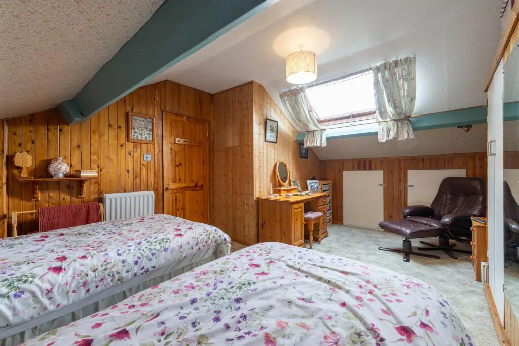 The loft conversion transforms this bungalow into something quite special. Upstairs, you will find two additional double bedroom spaces along with a WC, all finished with charming panelled walls that create a cosy, cabin in the woods atmosphere. It is an ideal retreat for children, guests, or even a creative workspace.