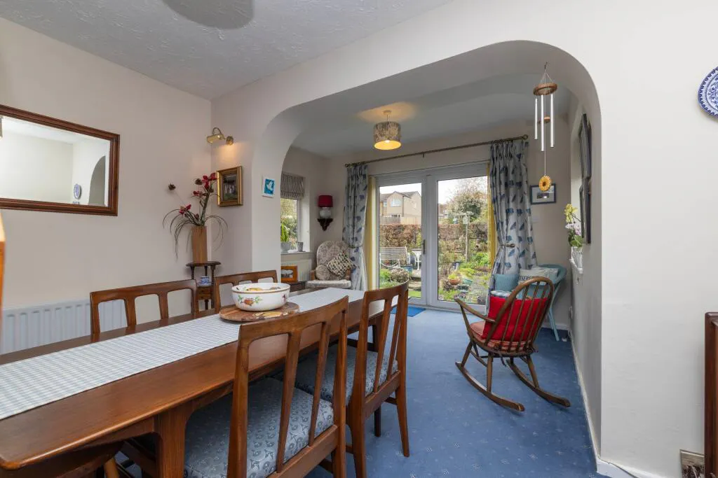To the rear, the garden is a real highlight. Beautifully maintained and full of established shrubs and flowers, it offers a peaceful and private setting. French doors from the dining area open directly onto this space, making it perfect for both everyday enjoyment and entertaining.