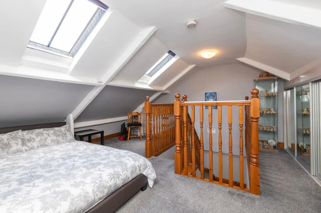 The second floor accommodates the third bedroom which benefits from fitted wardrobes, drawers and desk / dressing table. An excellent sized and versatile space enhanced by both Velux and side windows, creating a bright and comfortable room.