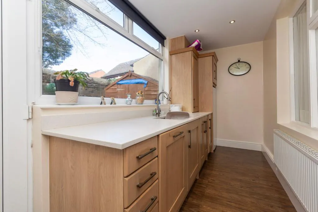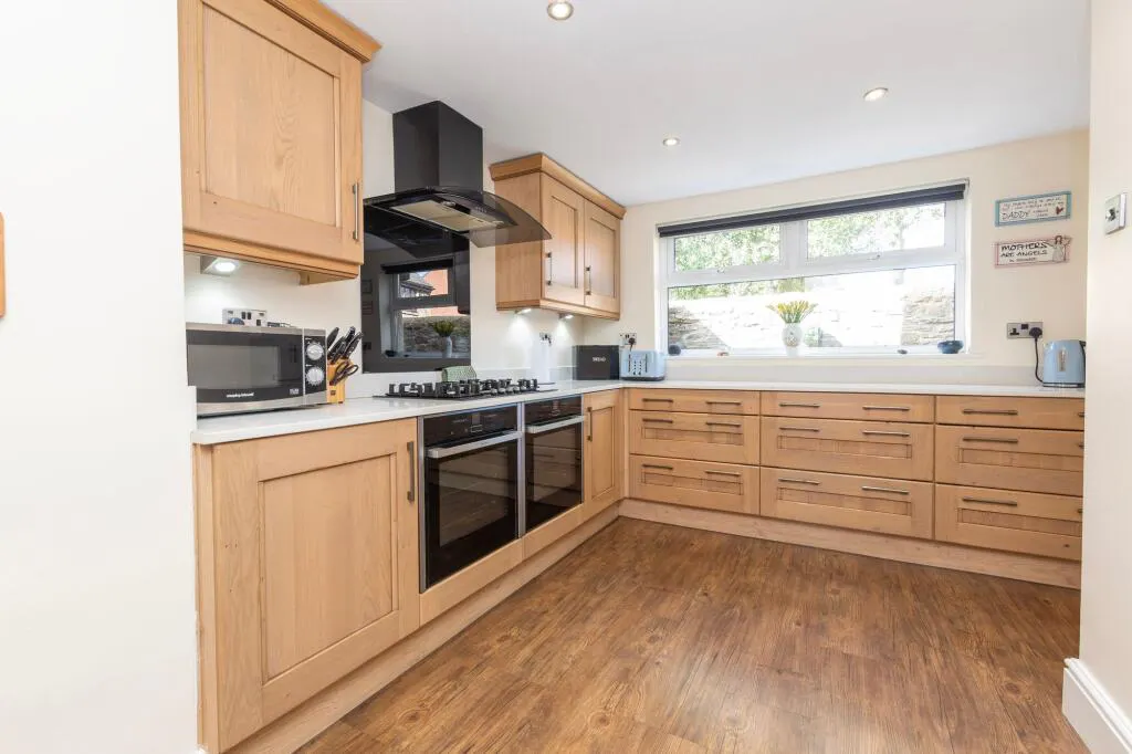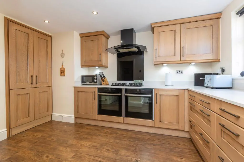 The kitchen has been thoughtfully designed to combine style and functionality, featuring extensive cabinetry, quality work surfaces, and integrated appliances, making it equally suited to everyday living and more ambitious cooking. Complementing this is a notably spacious utility room, providing excellent additional storage along with space for a washing machine, dishwasher, fridge, and sink.