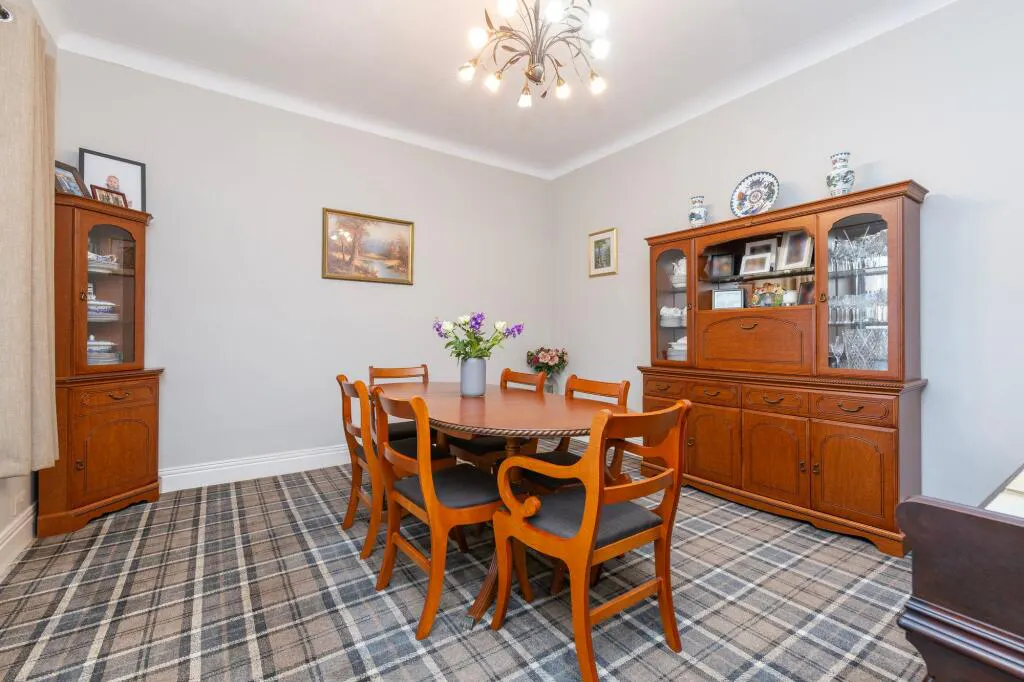 A spacious front porch provides a practical and welcoming entrance before leading into the impressive reception hall, where high ceilings and a beautifully panelled stairwell immediately reflect the home’s period heritage. These features continue throughout the principal rooms, enhancing both the sense of grandeur and the abundance of natural light.