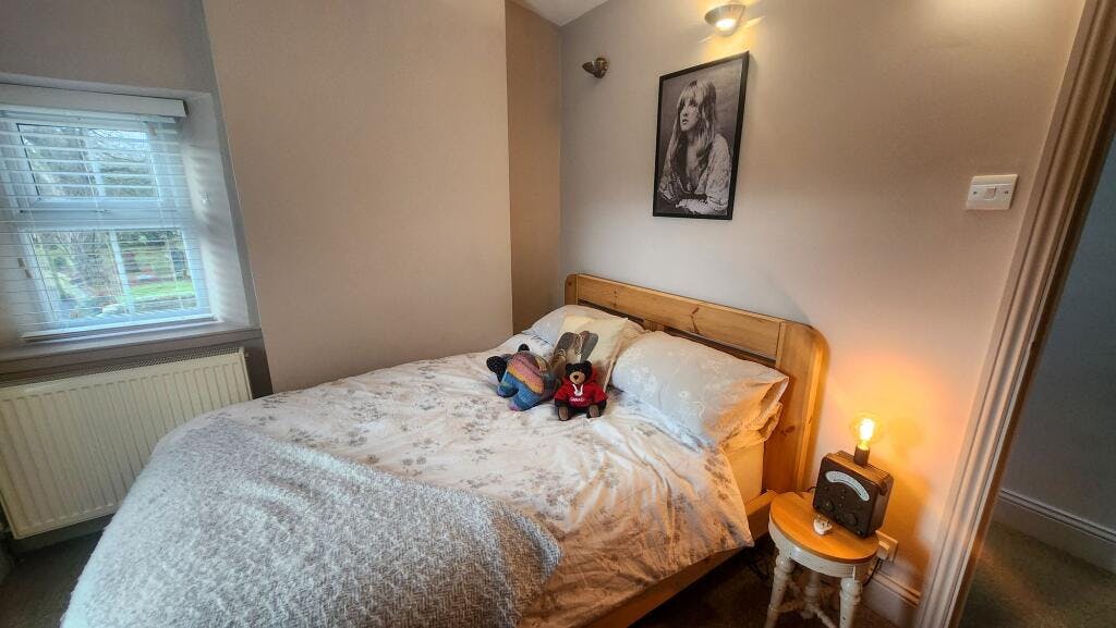 Upstairs, the character continues. The landing showcases exposed timbers, uplighting, and a sense of light and height rarely found in cottages of this age. The principal bedroom is generously proportioned, with clever storage above the stairs and ample space for a king size bed and furniture. The second bedroom comfortably accommodates a double bed and wardrobes, while the third bedroom, currently used as a home office, offers flexibility as a nursery, study, or occasional guest room.