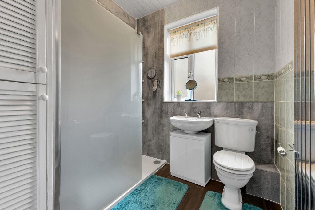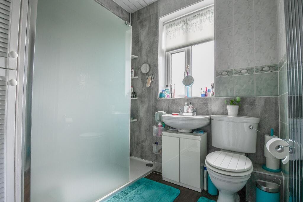 Upstairs, there are two generous double bedrooms (one enjoying a stunning bay window), a third single bedroom, and a bathroom fitted with a modern walk-in shower.