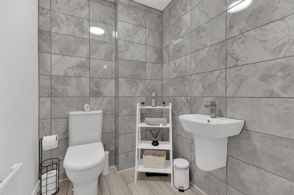Upstairs, the main bedroom benefits from its own en-suite shower room, while bedrooms two and three offer plenty of flexibility—ideal for growing families, guests, or working from home. The main bathroom is fully tiled and includes a modern suite with a bath and mixer shower attachment. Outside, the garden is fully enclosed and easy to maintain, with a patio and lawn area—great for summer BBQs.