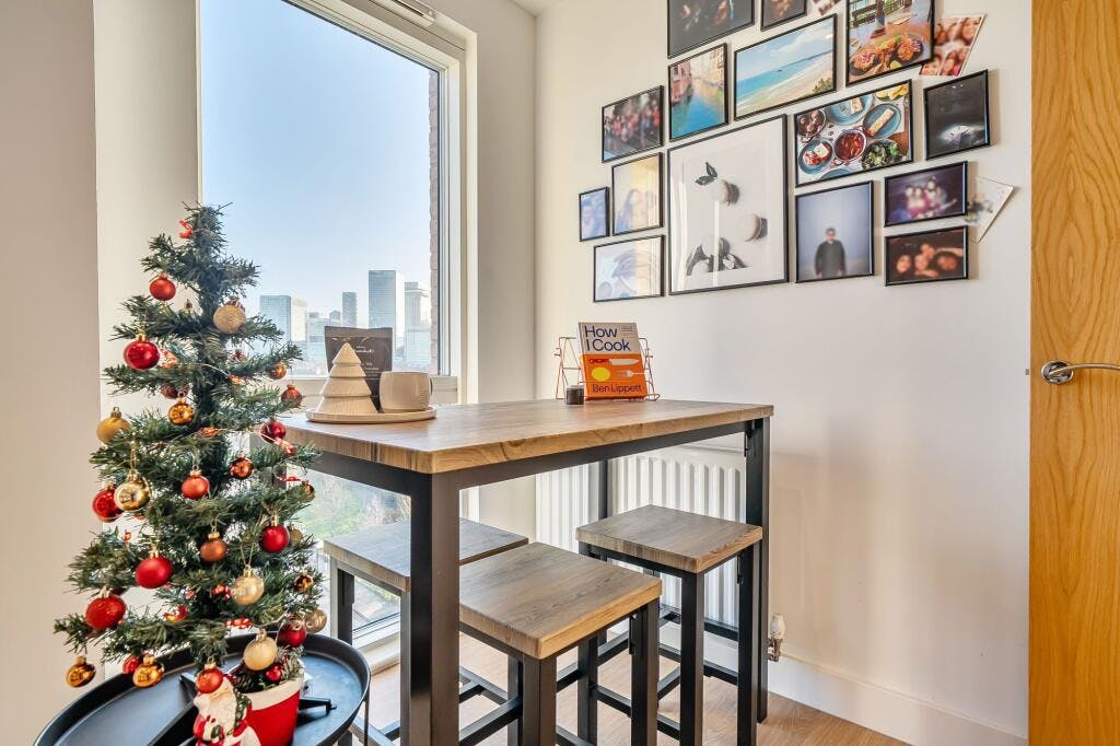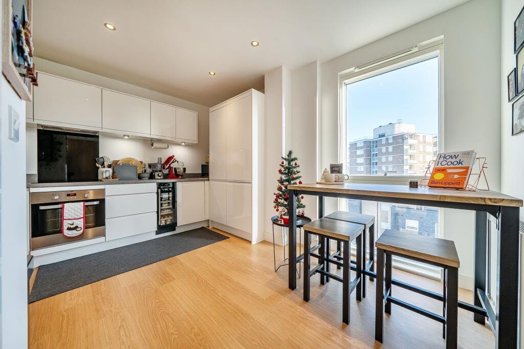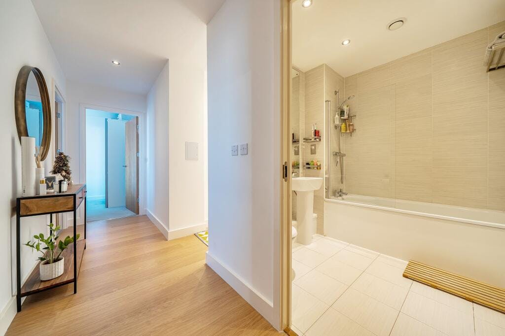 The apartment benefits from excellent transport links, with Langdon Park and Mile End stations nearby. West Ferry DLR, along with Canary Wharf’s Elizabeth and Jubilee lines, are also within a similar walking distance, providing effortless access to Canary Wharf and destinations beyond. Residents can enjoy impressive views of the striking London skyline or the lush green expanse of Bartlett Park directly opposite, home to Poplar Union and the renowned E5 Organic Bakehouse—a favourite among local coffee lovers. Poplar Union also offers a wide range of activities for local residents, including yoga, fitness, and arts and crafts classes, as well as a popular street food market held every Saturday.